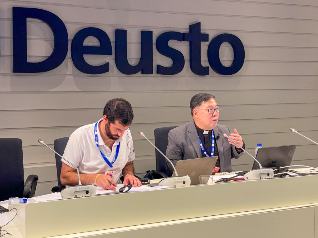 Daniel Huang SJ, junto a Álvaro Lobo SJ compartiendo algunas reflexiones de los asistentes